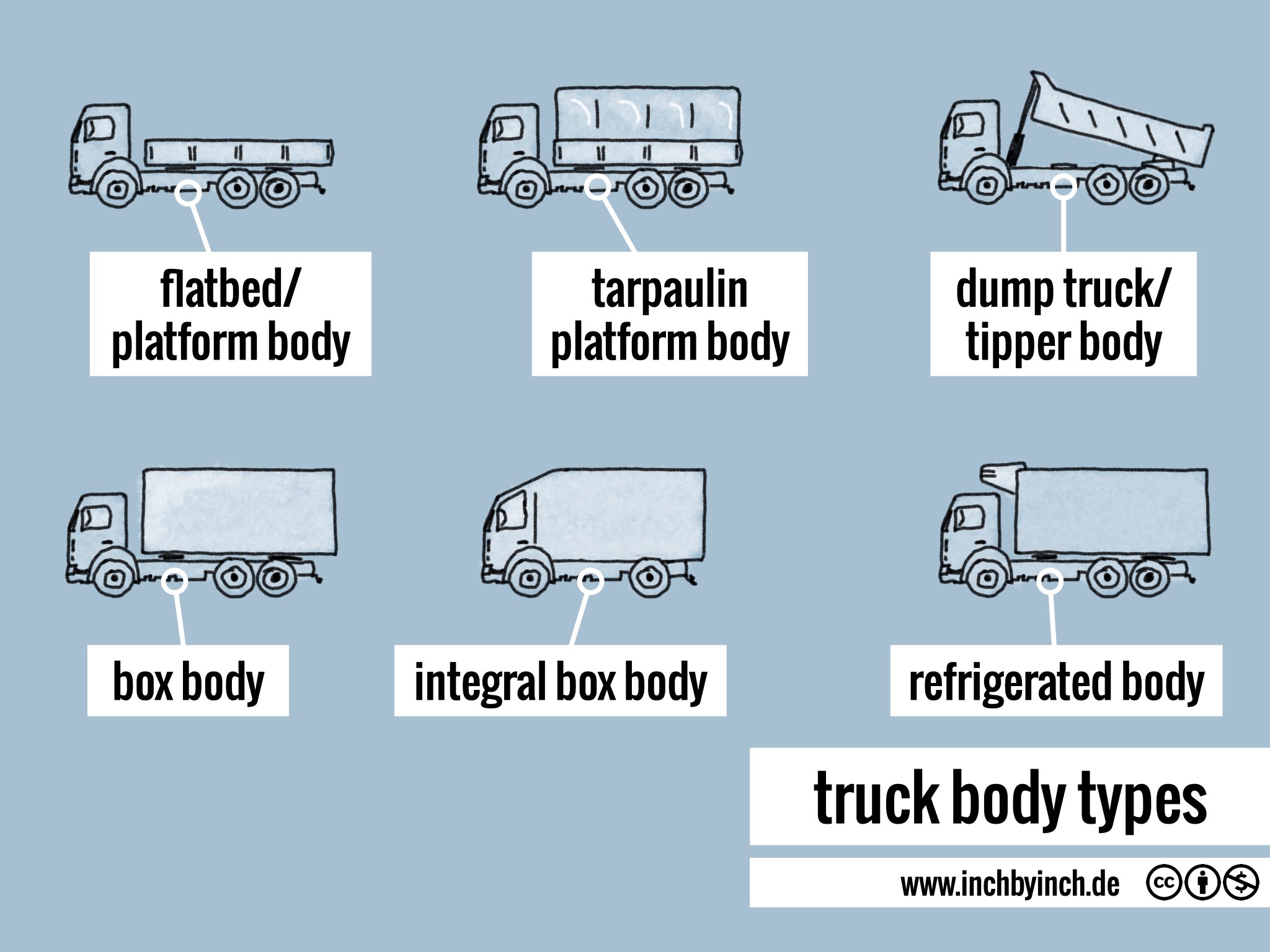 truck body typesInch10. Februar 2026Pictorial truck body typesLKW Aufbautenflatbed/platform bodyPritschenaufbautarpaulin platform bodyPlanenaufbaubox bodyKofferaufbauintegral box bodyKastenaufbaurefrigerated bodyKühlaufbaudump truck/tipper bodyKipperaufbau Schlagwörter# automobile# logistics# transport Vorheriger Beitrag first aid kit